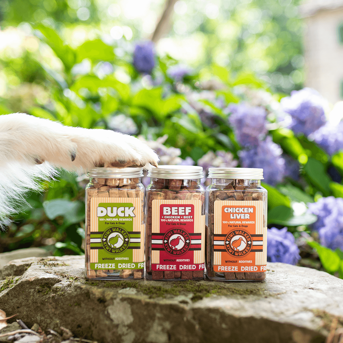 Kiwi Walker kārumi ir 100% dabīgi. Tiem nav pievienotas piedevas vai konservanti. Satur tikai īstus augļus, dārzeņus vai gaļu. Tie ir viegli, nav taukaini un lieliski piemēroti, lai palutinātu savu mīluli ar veselīgu uzkodu vai balvu. Auksti kaltētie kārumi tiek pagatavoti bez termiskās apstrādes, tāpēc tie saglabā visas svaigo sastāvdaļu dabīgās īpašības un garšu.